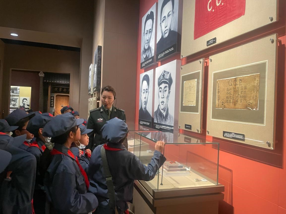 △尹龍喬丹在井岡山博物館向小學生講解賀頁朵當年的革命故事