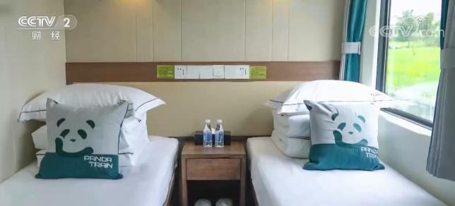 這輛由綠皮車改造的“熊貓專列”旅游列車,內外裝飾都按照“熊貓”主題元素統一設計,不僅配備獨立衛生間、恒溫淋浴,還在全車設置了方便老人、小孩的“一鍵呼叫”安全按鈕。