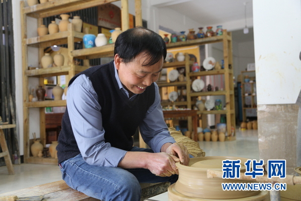 花茂制陶手藝第四代傳承人母先才制作陶藝擺件。新華網 蔡連素 攝
