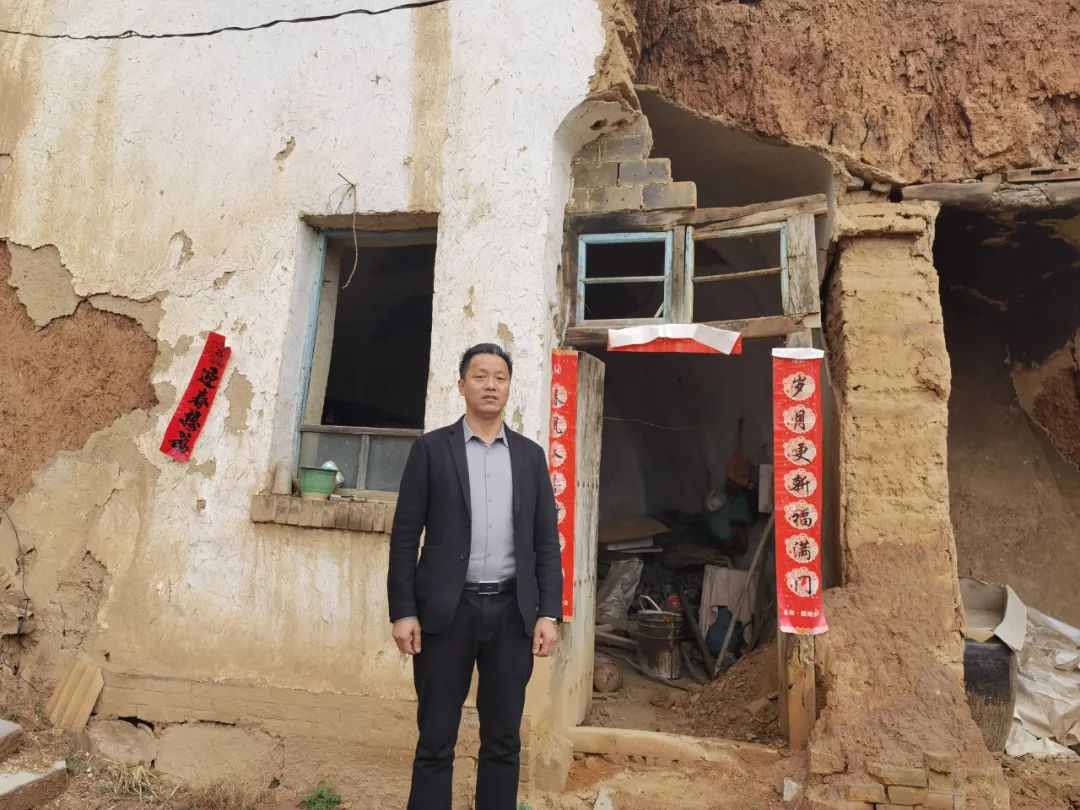 △張俊成在兒時(shí)住過(guò)的土窯前(馬曉媛/攝)