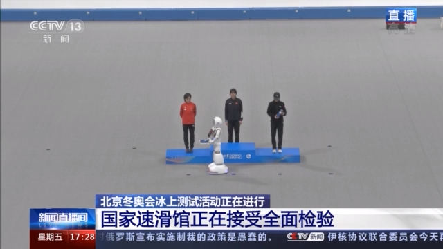 總臺記者 何暢:為什么要用機器人進行頒獎,實際上一方面是考慮到在疫情防控常態(tài)化的這種背景下,這是一種科技防御的有益創(chuàng)新和實踐。另外一方面,采用這種智能機器人頒獎的方式,也是國家速滑館一直在致力于打造的智慧場館的一處縮影。