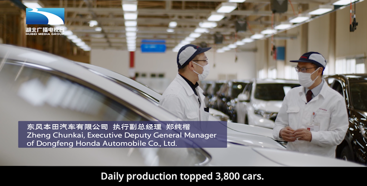 執(zhí)行副總經(jīng)理鄭純楷介紹“最高日產(chǎn)量超過了3800輛是歷史的最高水平。”