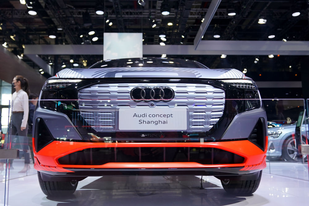 4月19日拍攝的上海車展上展出的上汽奧迪電動SUV汽車“Audi concept Shanghai”。新華社記者丁汀攝