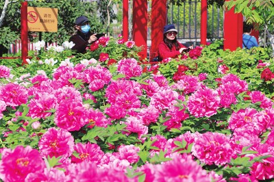 游客在江蘇沛縣楊屯鎮(zhèn)南山牡丹園觀景賞花,鄉(xiāng)村旅游發(fā)展持續(xù)帶動(dòng)農(nóng)民增收。張?bào)w會攝/光明圖片