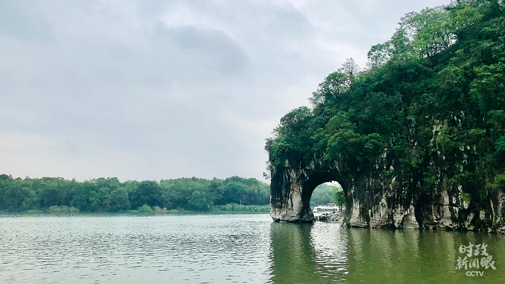 △桂林象鼻山因酷似一頭舒卷長鼻、暢飲清流的大象而得名。(總臺央視記者李煒拍攝)