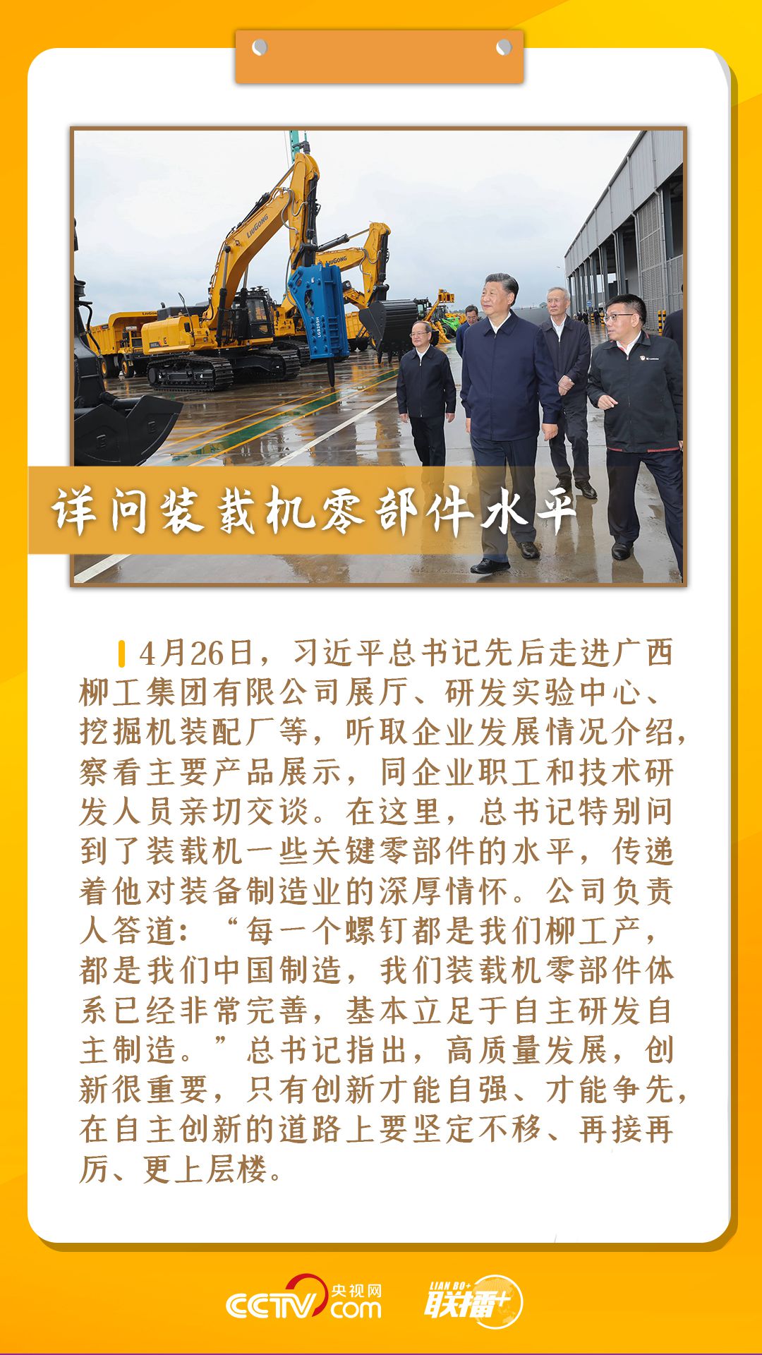 從到紅軍長征湘江戰役紀念園向湘江戰役紅軍烈士敬獻花籃、參觀紀念館到走進毛竹山村葡萄種植園察看葡萄長勢,再到走進廣西柳工集團有限公司展廳、研發實驗中心等聽取企業發展情況介紹……總書記行程滿滿,步履匆匆,留下很多令人印象深刻的話語與瞬間。