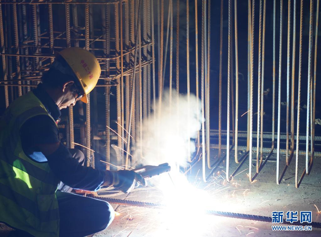 5月1日,工人在昆明地鐵五號線廣福路西口站現場進行焊接作業。