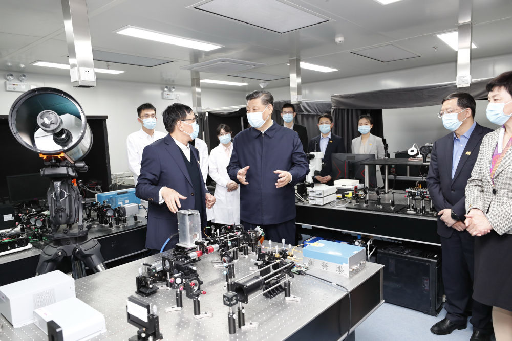 ↑2021年4月19日,習近平在清華大學成像與智能技術實驗室同師生們親切交談。
