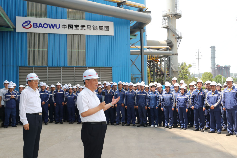 ↑2020年8月19日上午,習近平在安徽馬鞍山市中國寶武馬鋼集團,同企業勞動模范、工人代表親切交流。