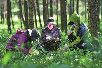 工作人員在河北塞罕壩機械林場采集數據(2017年7月12日攝)。新華社記者 王曉攝