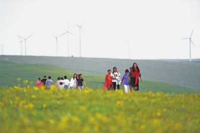 2020年7月,位于內蒙古烏蘭察布市察哈爾右翼中旗的輝騰錫勒(黃花溝)草原旅游區鮮花盛開,郁郁蔥蔥。新華社記者 劉磊攝