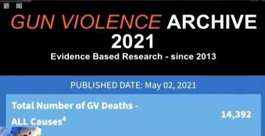 根據美國槍支暴力檔案網站的統計,今年以來,美國涉槍案件造成的死亡人數已達到14392人。