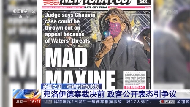 4月17日,距離陪審團(tuán)作出裁決前三天,82歲的加州民主黨眾議員瑪克辛·沃爾特斯(maxine waters)在街頭反對(duì)各地警方在陪審團(tuán)“自由討論(DELIBERATION)”期間執(zhí)行的宵禁,并呼吁民眾對(duì)審判施壓。