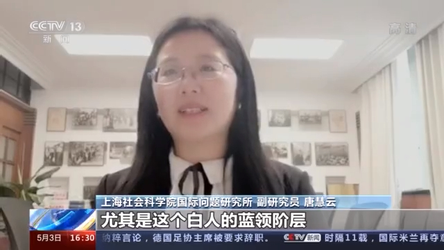 上海社會(huì)科學(xué)院國(guó)際問題研究所 副研究員 唐慧云:白人的危機(jī)是一種多種危機(jī)的疊加,尤其是在金融危機(jī)之后,白人就很多陷入了貧困,尤其是這個(gè)白人的藍(lán)領(lǐng)階層。過去這個(gè)藍(lán)領(lǐng)階層是中產(chǎn)階級(jí),在金融危機(jī)之后,很多白人就陷入貧困、酗酒,自殺率都比較的高。
