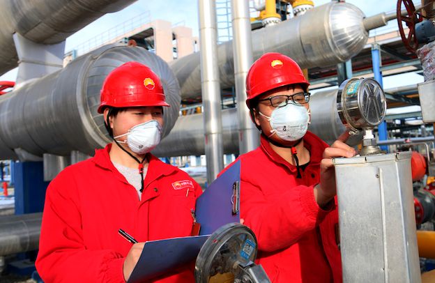 △塔里木油田公司的兩名青年職工在氣田巡檢。