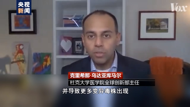 杜克大學醫學院全球創新部主任 克里希那·烏達亞庫馬爾:這(囤積疫苗)讓疫情持續的時間更長,感染人數增多,并導致更多變異毒株出現,最終的結果就是,更多本可避免死亡的人會因此死去。