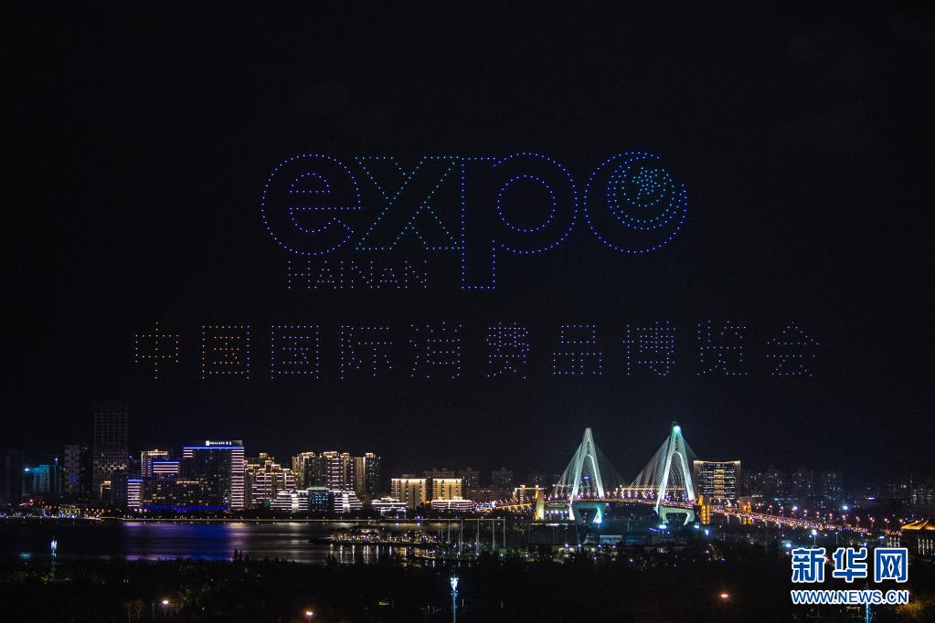 首屆中國國際消費品博覽會將于5月7日至10日在位于海口的海南國際會展中心舉辦。5月6日晚,海口市上演無人機表演秀,迎接首屆消博會的舉辦。