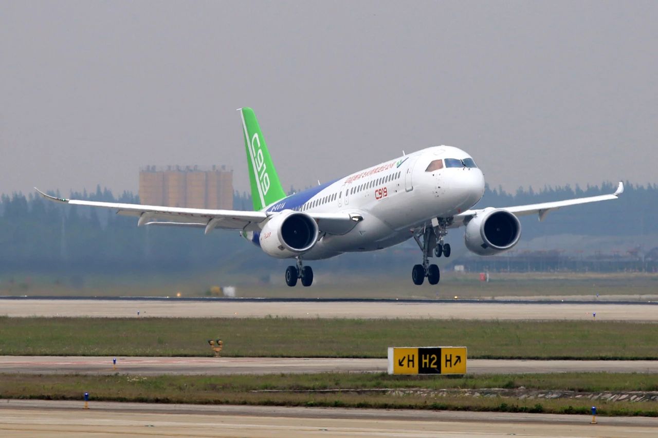 三年后,中國自主研制的大型噴氣式客機(jī)C919成功首飛。