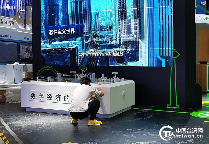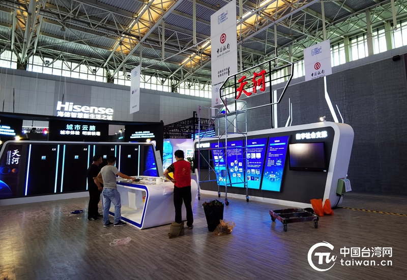 第五屆世界智能大會將于20日在天津梅江會展中心開幕。圖為工作人員正在進行最后階段的調(diào)試、完善、布展等工作。(中國臺灣網(wǎng) 張亞靜 攝)