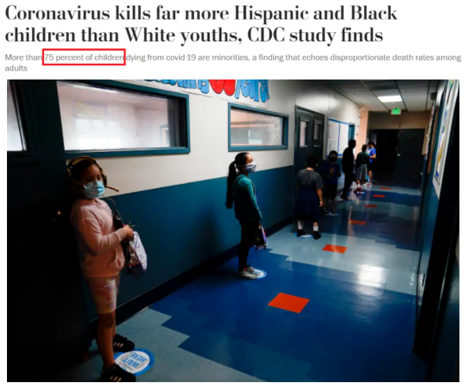 研究還發(fā)現(xiàn),新冠肺炎對(duì)少數(shù)族裔兒童和青少年的影響尤為嚴(yán)重,美國(guó)死于新冠肺炎的未成年人中有75%以上是少數(shù)族裔。