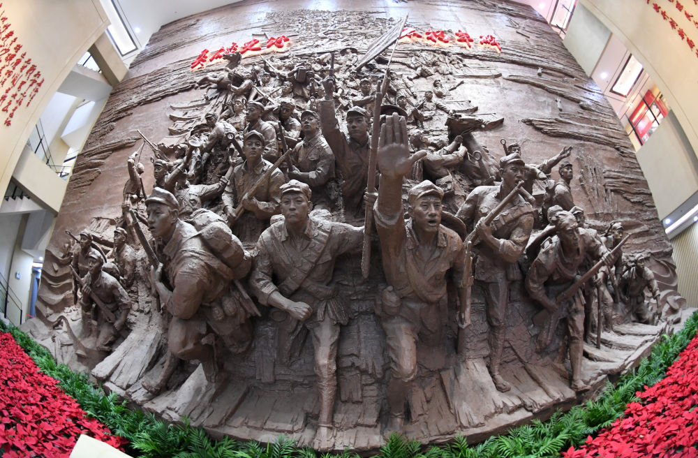 廣西桂林全州縣紅軍長征湘江戰役紀念館內的雕塑(4月26日攝)。新華社記者陸波岸攝