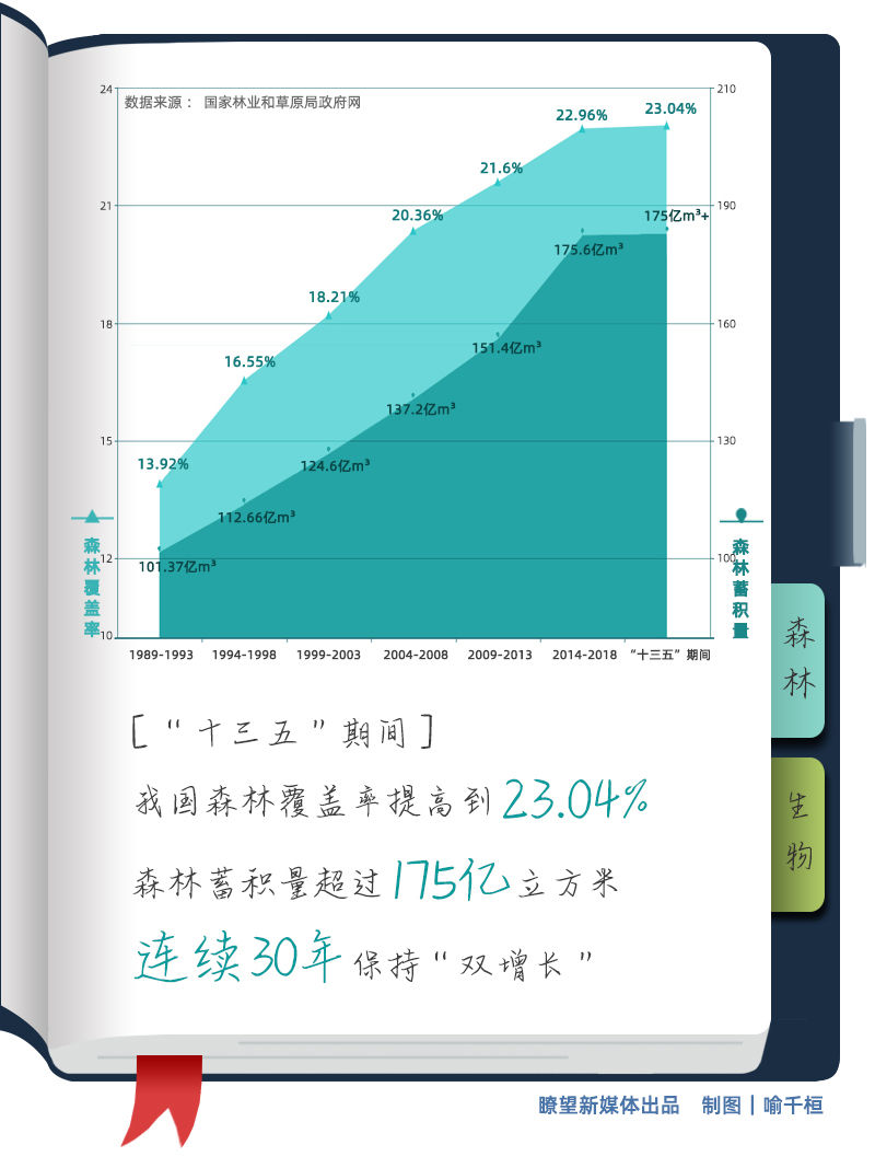 三北防護林、天然林保護、退耕還林還草等一系列重大生態工程深入推進。“十三五”期間,我國森林覆蓋率提高到23.04%,森林蓄積量超過175億立方米,連續30年保持“雙增長”,成為森林資源增長最多的國家。