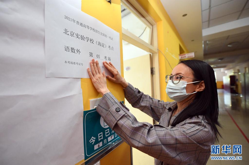 6月5日, 在北京實驗學校(海淀)考點,工作人員張貼考場信息。