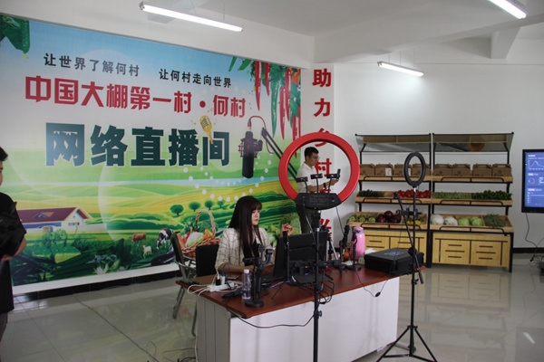 2020年,何村作為高陵區新時代黨性教育基地教學點,村黨支部順應電子商務發展新形勢,開通網絡直播間并組織群眾每晚7點至9點,通過網絡直播平臺銷售當地農產品。電商作為何村致富增收的新渠道,第一時間把農村的產品推向大市場,省去了農產品走向市場的采購、菜商、超市等繁瑣環節,觀眾通過看何村直播,一個電話就可以購買到放心的綠色蔬菜,節省流程時間,降低了菜價,也增加了村民收入。