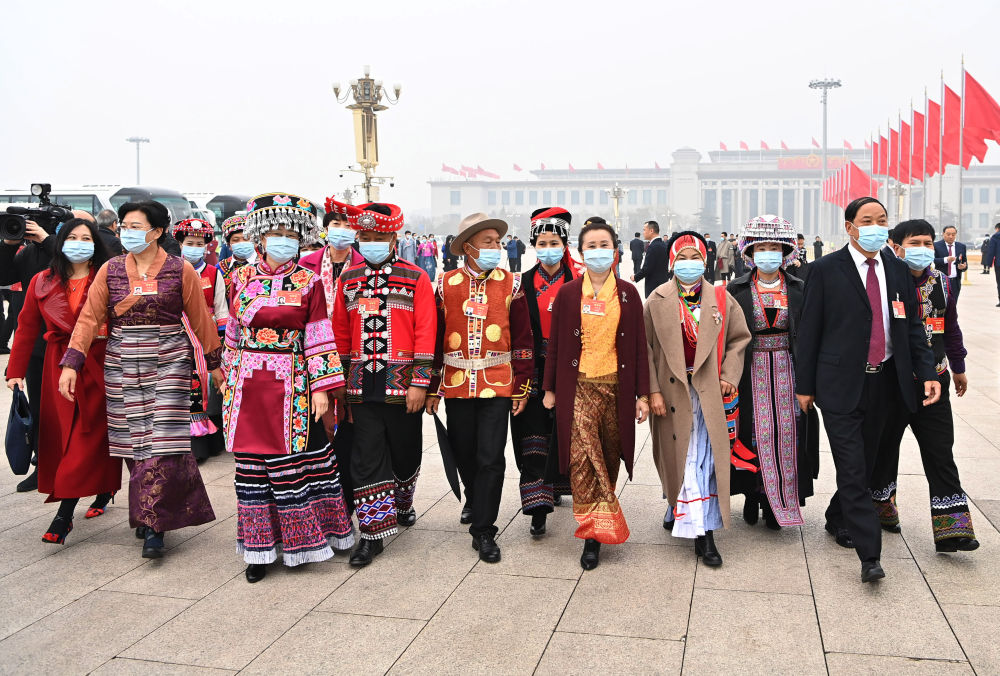 ↑2021年3月5日,十三屆全國人大四次會議在北京開幕,全國人大代表走向會場。在十三屆全國人大代表中,少數民族代表占代表總數的14%以上,全國55個少數民族都有本民族的代表。