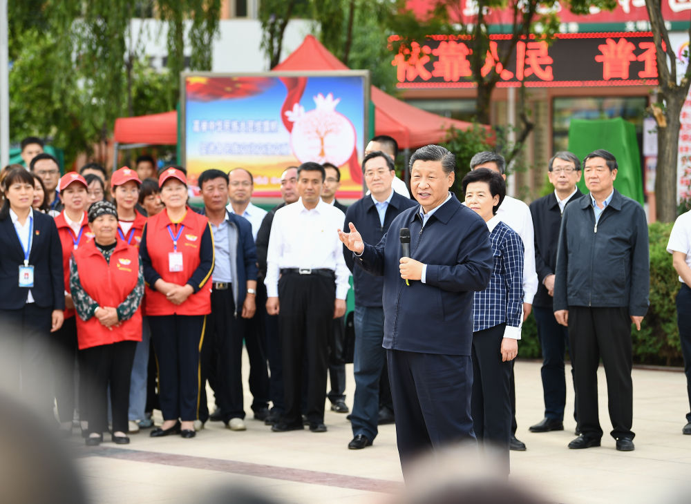 ↑2020年6月8日,習近平在寧夏吳忠市利通區金花園社區廣場,同居民們親切交流。