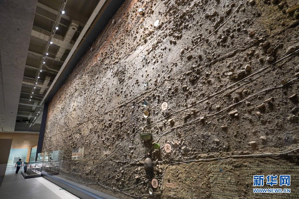 這是揚州中國大運河博物館內(nèi)展出的“河南開封州橋遺址汴河剖面”(6月16日攝)。