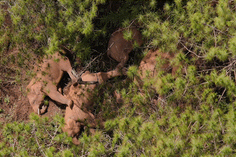 象群中有兩頭小象偷吃酒糟醉酒而掉隊(duì)