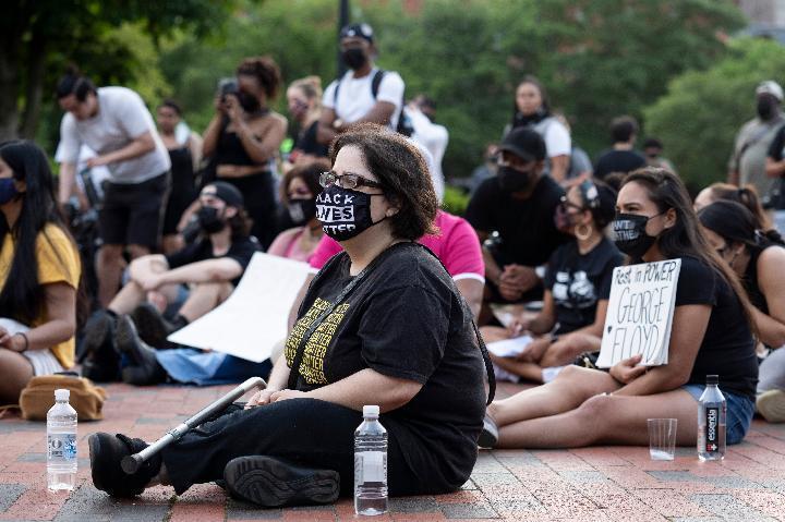 5月25日,人們在美國華盛頓白宮附近參加悼念弗洛伊德的集會。當日是非洲裔美國人喬治·弗洛伊德遭明尼蘇達州白人警察“跪頸”執法致死一周年,美國多地舉行悼念活動。(新華社記者劉杰攝)