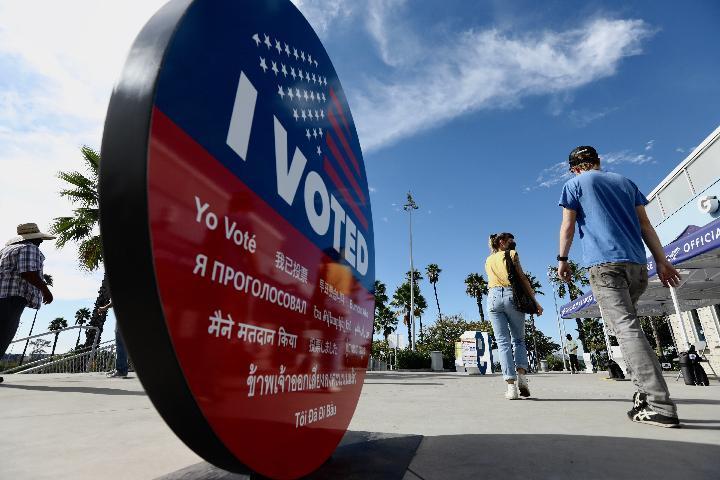 2020年10月31日,人們來到美國洛杉磯的一個投票站外準備投票。(新華社發)