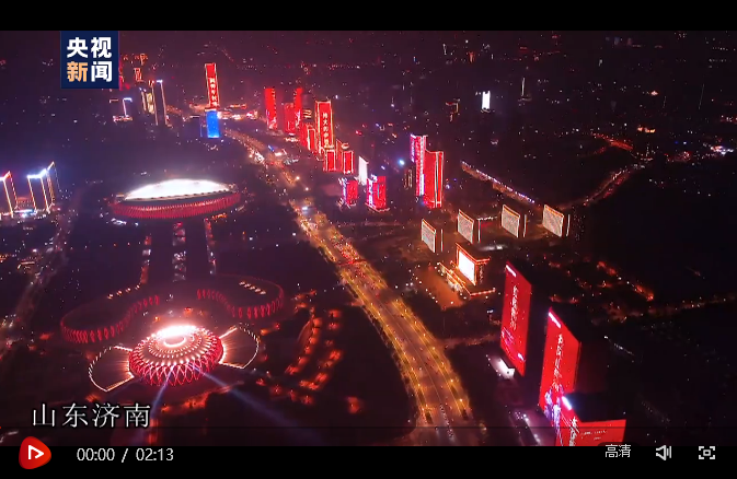 連日來,在山東濟南,每當夜幕降臨,濟南西站、奧體中心、綠地中心等區域,鱗次櫛比的樓宇建筑都披上了燦爛的紅妝,一幅幅震撼人心的紅色畫卷在樓宇間緩緩展開,一幕幕光影如同一顆顆躍動的音符,匯聚成催人奮進的旋律,通過燈光秀多維度展現了中國共產黨風雨兼程、砥礪奮進的百年歷程,以及在黨的堅強領導下濟南這座城市發生的翻天覆地的變化。