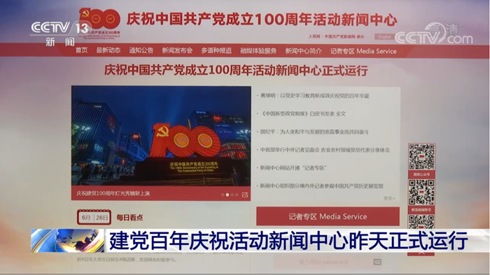 昨天(6月26日),設在北京梅地亞中心的慶祝中國共產黨成立100周年活動新聞中心正式運行。