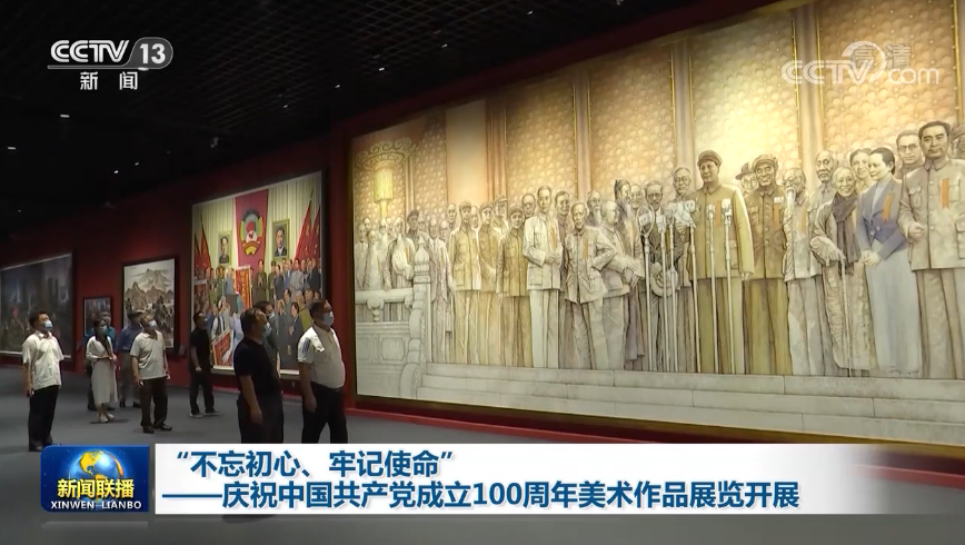 央視網消息(新聞聯播):由中共中央宣傳部、中國文聯主辦的“不忘初心 牢記使命——慶祝中國共產黨成立100周年美術作品展覽”6月27日在中國共產黨歷史展覽館開展。展覽聚焦建黨百年的重大歷史事件、杰出歷史人物和優秀共產黨人,形象化地再現了中國共產黨的光輝歷程和不朽功勛,以藝術之美詮釋了在黨的領導下中華民族實現了從站起來、富起來到強起來的歷史性飛躍,以時代畫卷描繪了中國人民闊步新征程、奮進新時代,實現中華民族偉大復興的光明前景。