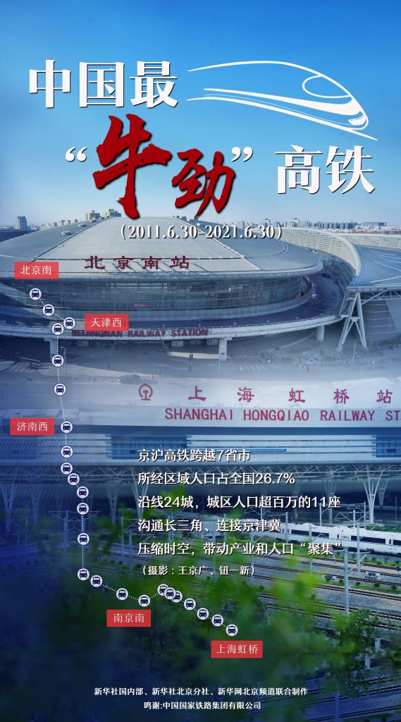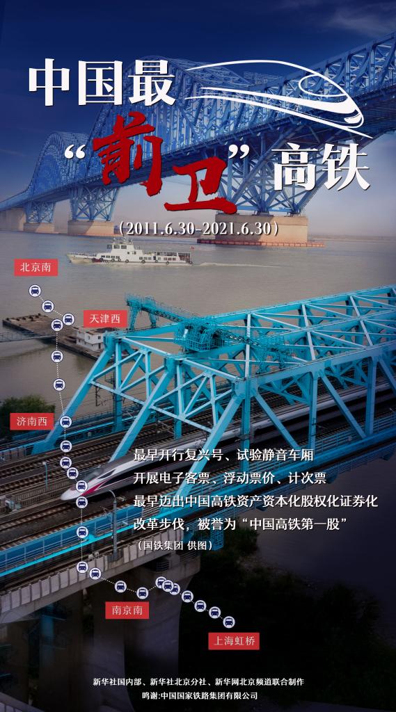新華社北京6月30日電(記者樊曦、丁靜)30日,京滬高鐵迎來運營10周年。10年間,京滬高鐵在中國高鐵發展史上創造多項成績,飛馳出一道亮麗軌跡。