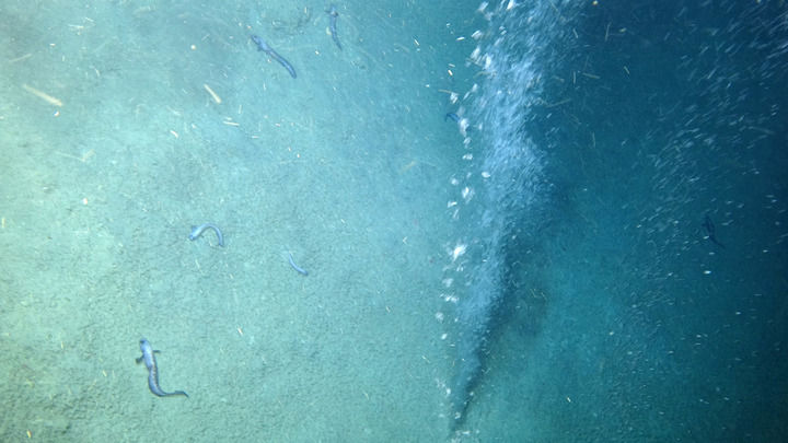 “科學(xué)”號(hào)科考船的科研人員在深海發(fā)現(xiàn)的冷泉噴口(2021年6月攝)。新華社發(fā)(中科院海洋所供圖)