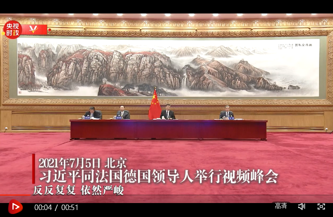 國家主席習(xí)近平5日晚在北京同法國總統(tǒng)馬克龍、德國總理默克爾舉行視頻峰會。