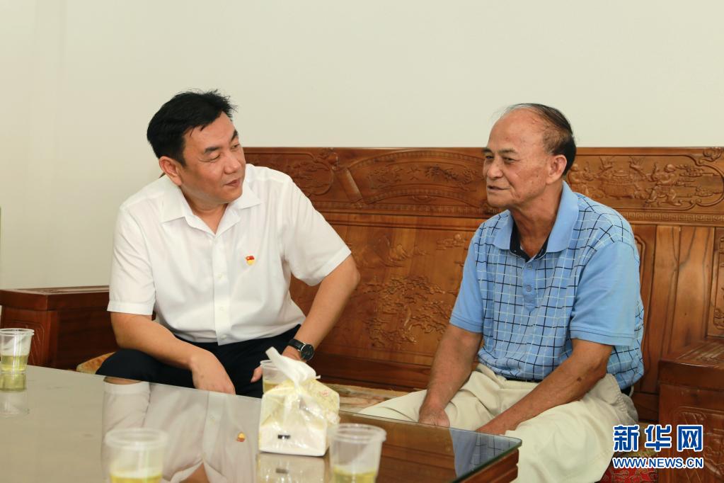 劉光濱(左)到基層慰問老黨員(2019年6月28日攝)。新華社發