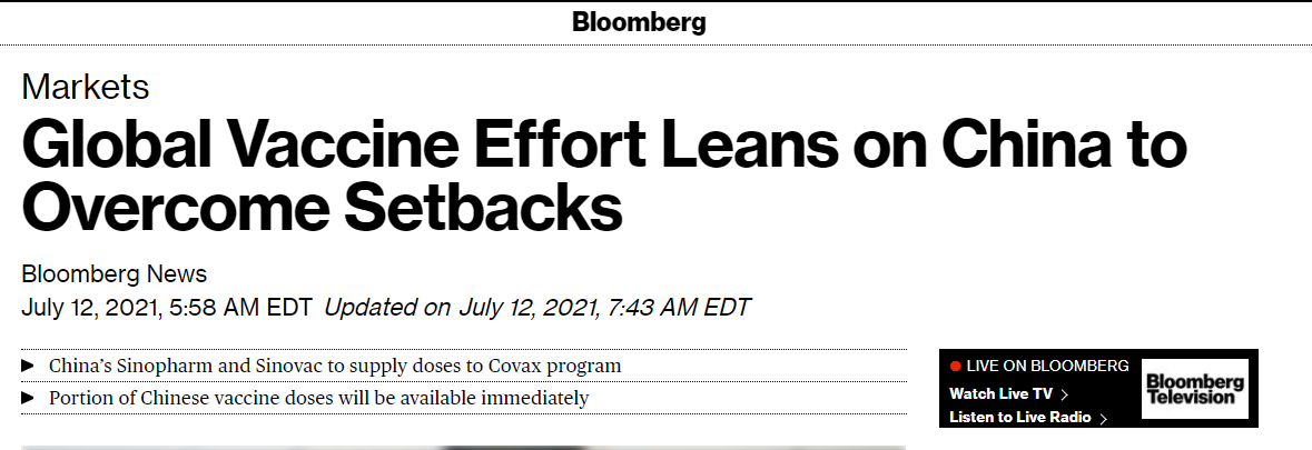 美國彭博社報道稱,在供應短缺導致可挽救生命的新冠疫苗供應出現明顯缺口后,世界的目光轉向中國。