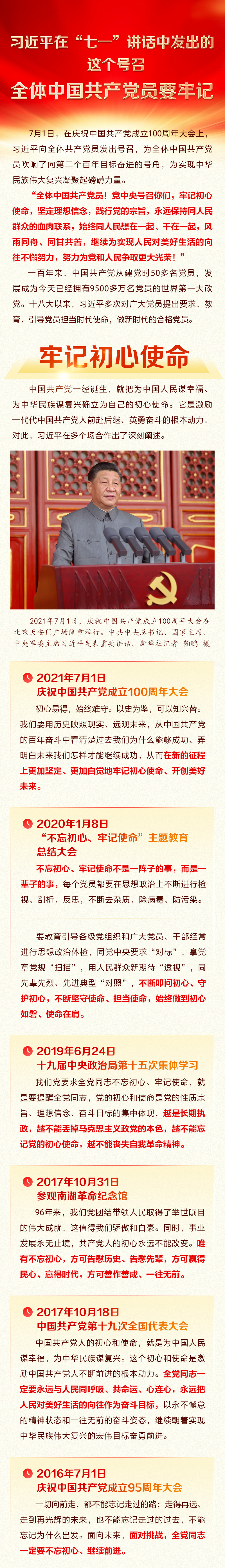 習近平在“七一”講話中發出的這個號召全體中國共產黨員要牢記