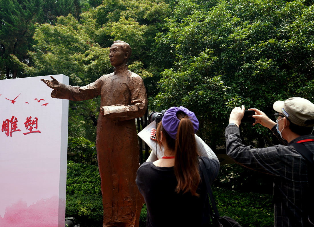 這是6月11日在上海復旦大學《共產黨宣言》展示館拍攝的陳望道雕塑。新華社記者 劉穎 攝