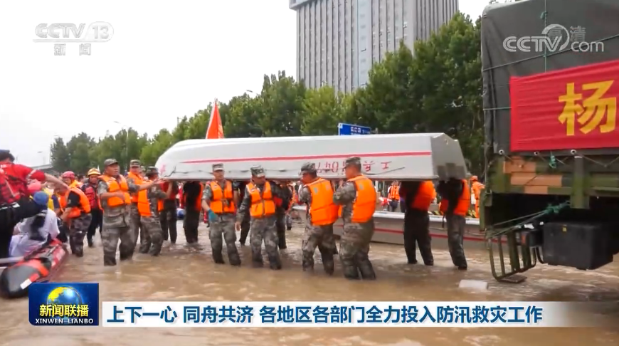 央視網消息(新聞聯播):連日來,河南等地持續遭遇強降雨,防汛形勢十分嚴峻。習近平總書記對防汛救災工作作出重要指示,要求始終把保障人民群眾生命財產安全放在第一位,抓細抓實各項防汛救災措施。各地各部門全力落實總書記重要指示,各級黨委和政府緊急應對,組織力量防汛救災、安置受災群眾;中央各部門迅速反應,調配救援力量與物資馳援一線,恢復電力、通信等生產生活秩序;人民子弟兵勇挑重擔,晝夜不停接力救援受困群眾;受災地區干部群眾眾志成城,全國人民守望相助,凝聚起防汛搶險救災的強大力量。
