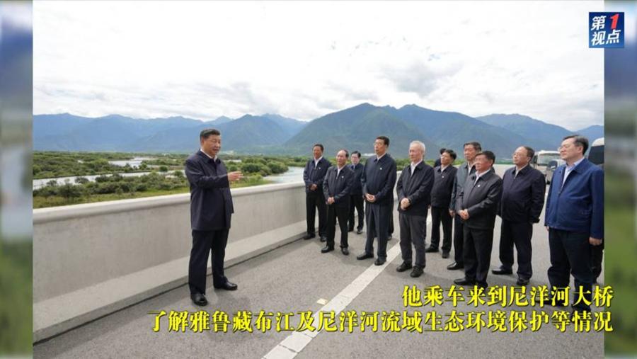 習近平總書記21日赴西藏考察調研。當天上午,習近平乘坐飛機抵達林芝米林機場,受到西藏各族干部群眾熱烈歡迎。隨后,他乘車來到尼洋河大橋,了解雅魯藏布江及尼洋河流域生態環境保護等情況。