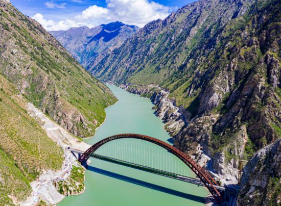 ——藏木雅魯藏布江雙線特大橋全長525.1米、主拱跨徑430米,創(chuàng)造了鐵路鋼管混凝土拱橋海拔最高、跨度最大等世界之最……