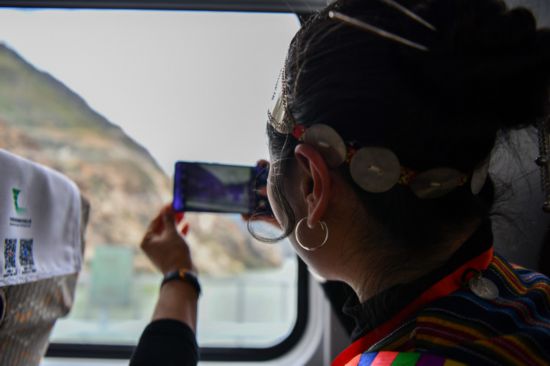 復(fù)興號(hào)列車上的乘客用手機(jī)記錄沿途風(fēng)景。(2021年6月25日攝)新華社記者 晉美多吉 攝