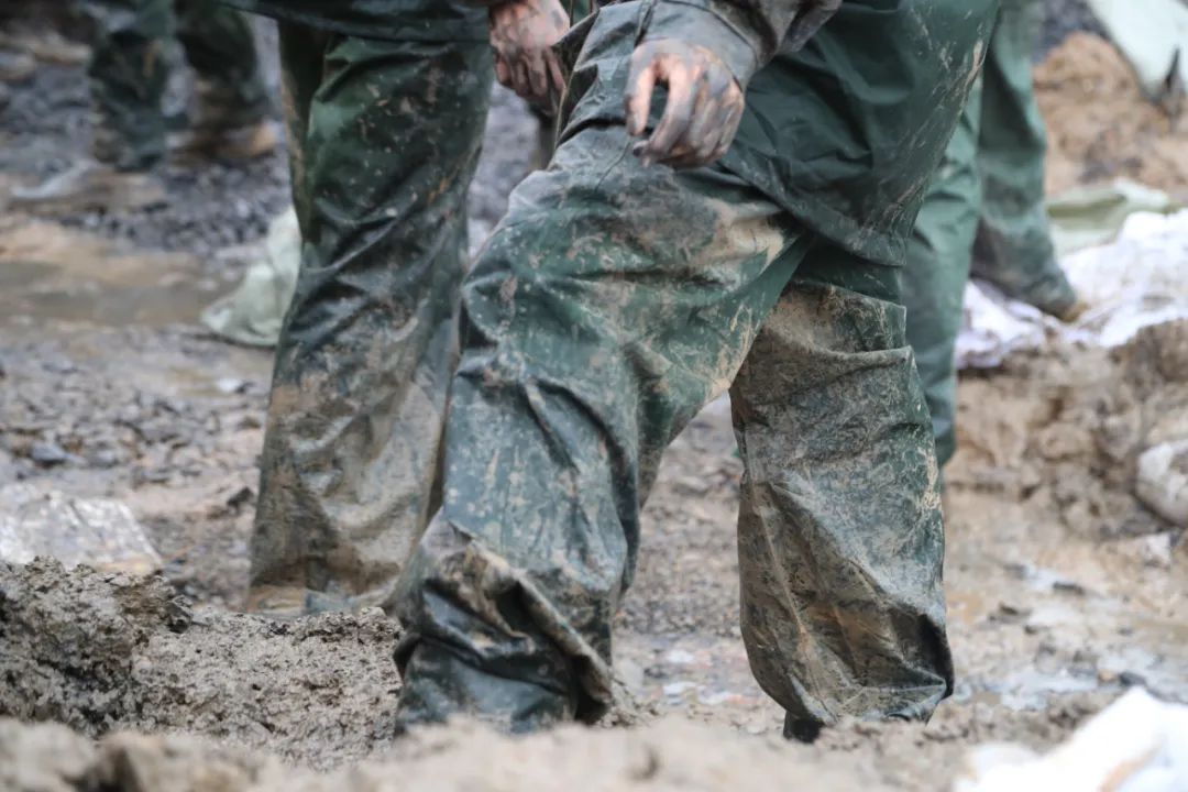 這是一張“00后”士兵的臉,大堤上,他咬緊牙關,眉頭緊鎖,低下身子,吃力地舉起沙包往肩上送。那張黝黑的臉憋得通紅,汗水順著脖子往下淌,軍裝早已濕透。