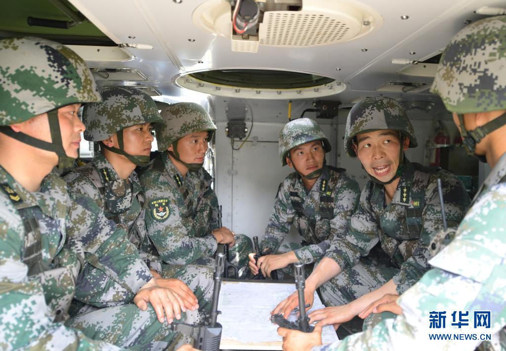 對抗演練前,陸軍第83集團軍某旅“紅一連”支部一班人共同研究作戰方案(7月4日攝)。新華社記者 張永進 攝